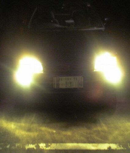 フォグランプもイエローバルブに変えました。散光する光も写っちゃってるんで境目がありませんが。分かりづらい。 フォグもヘッドライト同様ライジングイエローなんで実際は真っ黄色です。手前の白線を見て頂けると、見易さを想像して頂けるのではないかと。