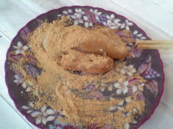 また一個食べてからの写真だよ(笑) 前記の館山行脚で食べた安倍川餅。安倍川餅の由来は静岡県の茶屋だったと思いますけど、これは富楽里で食べました。