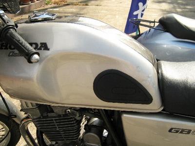 しかし面積も広くて良い格好のGB純正品はもう欠品。タンク上部のアーチ形状が近いのでカワサキのアクセサリーをチョイスしました。W650のニーパッドがでかくて都合よさそうだったんですけど、あれはアクセサリーじゃなくて補修部品みたいで厚みもかなり凄いんで躊躇しました。