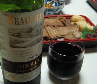 2010-08-13 BEAUCHATEL MERLOT 酒 ボーシャテル メルロー。 ハーフサイズは気軽に開けられるのが良いですね。メルロー種らしい気軽な口当たりと飲み応え。酸味・渋みとも控えめながらミディアムボディを感じられるのは重厚な赤が好きなクチには嬉しいです。総じてしっかりした味わいや性格を印象づけられます。 リーズナブルなのがありがたく、だからこそ上を望まないわけじゃないけど納得できます。どうやらカベルネソーブィニョンやブランのボトルもあるようなのでまた呑んでみたいです。 吟昧浜屋 バーベキュー弁当。