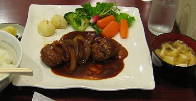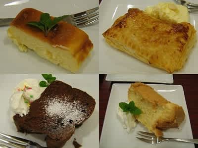 2010-11-19 本日のランチ 食べ物 今日のランチは、お呼ばれしてご馳走になりました。 メインディッシュは煮込みハンバーグ。他に生姜焼き・トマトパスタ等ありましたが、どれも美味しさと見た目に大満足でした。 その後のデザート 全て手作りのケーキは4種、ベイクドチーズ・アップルパイ・ショコラ・シフォン。 実は今度オープンする店のメニューを一足お先に戴いたのですが、どれも満足感あるお品でした。お腹いっぱい。