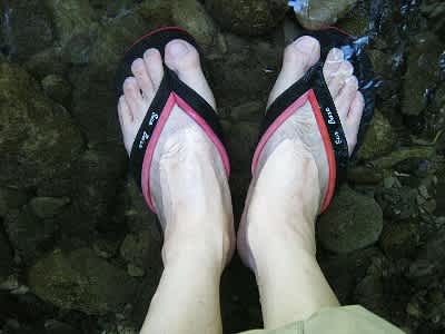 持って行ったビーチサンダルに履き替え涼を取ります。水が少ないからキンキンに冷えてはいませんでしたが・・・ハヤの群れやカエルが元気に泳いでました。
