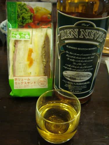 2012-03-17 BEN NEVIS 酒 ベン・ネヴィス蒸留所蔵出し。 ハイランドモルトで知られたディステラーですが、マイルドで呑みやすく纏まりのあるブレンデッドスコッチです。気軽に呑めるボトルで、晩酌に良いですね。 サンドウィッチ。