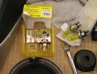厳密には点灯時間が変わってしまっているので片方がかなり早く切れる事が想像できます。当時、急な球切れ用にと常備してたわけですが 振動の多い単車に搭載しておくことは感心しませんね。もし切れたら上側を点灯させてマスキングなりレベル調整すれば良いわけですから。この事には取り付けてから気がつきまして、今回の施工を後押ししました。