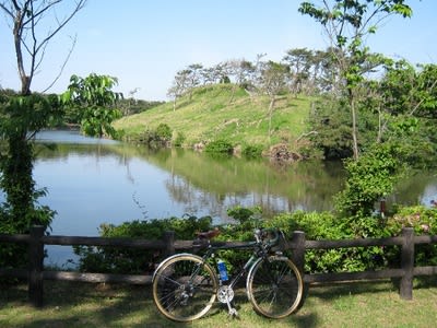 とりあえず300km達成目指して選んだ行き先は全編フラットな富津公園。GWだけあって8時前なのに賑やか。キャンプに来てる家族連れが大勢テント張ってました。穏やかな池の様子からも、天気に恵まれたことが分かりますでしょ。