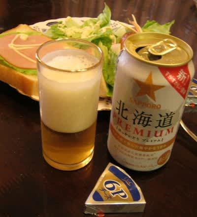 2013-05-21 北海道PREMIUM 酒 サッポロ。 これはきめ細かなのど越しと泡がクリーミーで、味わいもしっかりと伝わってきます。全体のバランスも整ったとても素晴らしい仕上がりです。美味い。 チーズ&サンドウィッチ。