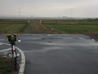 ちょっと前まで雨が降り続いていたみたいで路面は濡れたまま。田んぼと雲の稜線は霞がかってて良い風情ですけどね。寒くもないし。