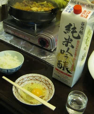 2014-02-12 谷乃越 純米吟醸 酒 白河銘醸 こう寒いと日本酒が助かります。毎日の晩酌にありがたいリーズナブルな酒ですが、これなかなかいけます。口当たりは柔らかく、ほのかな薫りと甘みを届けてくれます。純米吟醸はこうでなくっちゃ。 すき焼き。