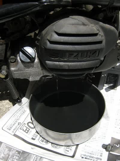 今回経過観察してたんですが、コックオフでも確実にガソリンは滴りました。キャブに繋がる口を塞いで上に向ければ留まりますけど、ステップボード外してなきゃその手は使えない。毎日のように走らせないと確実にオーバーフローする。チョイノリのココ、残念ながら負圧式じゃないと工業製品としてアウトだと思われます。取り敢えずオイル交換。