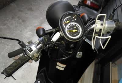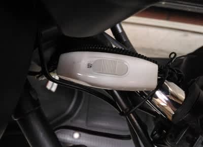 スイッチはコタツ等に使われる安いヤツに換装。ハンカバを併用すればまさにバイクの炬燵です。