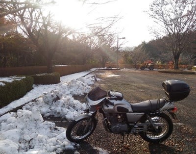 2016-11-25 昨日の雪を見に GB250 本当は自転車で行きたかったんですけどね。午前中時間が無くて午後2時スタート。こんな時間じゃ戯れる程の雪も残ってないし、元々行く予定だった友人の墓参りに行ってきました。 気温11℃は寒いけど、オーバーパンツもハンカバも無しでOKでした。日が暮れる頃には厳しくなりますけどね。あと、帰りに路上の小さな雪の跡に乗ったらしく前輪がちょっと滑って怖い思いをしました。気を付けよう。