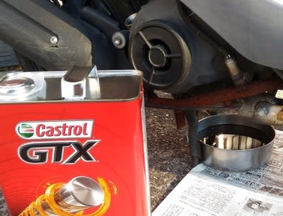 2020-02-01 レッツ4のオイル交換 その他バイク 1705.1kmで入庫。1年1ヶ月振り。 オイル交換。その他注油や清掃をしました。 マフラーやエンジンハンガーの錆が酷かったので外さず簡易ではありますが塗装しました。あとはタイヤ交換の予定です。
