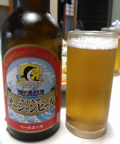土産として買ってきた九十九里オーシャンビールのペールエール。第一印象は一口呑んで炭酸が薄い、気が抜けてるみたいって思いました。や、エールが泡を楽しむタイプじぉないってことは知ってますよ。それでもこれは・・・って感じ。薫りについてももろ手を挙げて褒められるほどじゃないと。