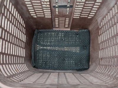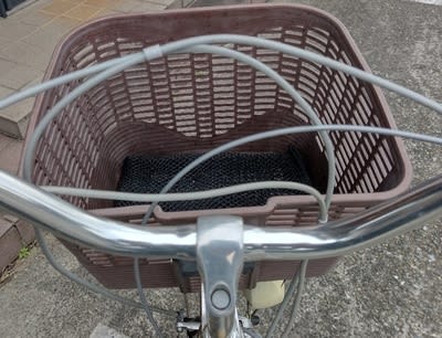 因みにカゴの中のクッションも新調。今回は百斤の車用メッシュシート。格子構造がショックを和らげていいんじゃないかと思い、タイラップで留めてみました。これで卵も割れないぜw