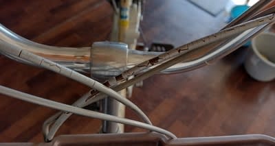 電動アシスト車のブレーキケーブルがボロボロになってると家人から報告がありまして。アラ!? 室内保管だし、自分の自転車歴の中でこんなになったことないし、天下のブリジストンなのに・・・なんて思いましたが、購入してもうすぐ丸11年。よそ様もこうなってるようですね。
