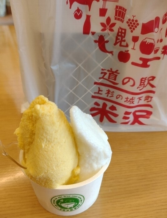 ここのジェラートが美味しくてね。前回はつや姫とさくらんぼ。今回はラフランスとマンゴーにしました。全部食べたくなる。
