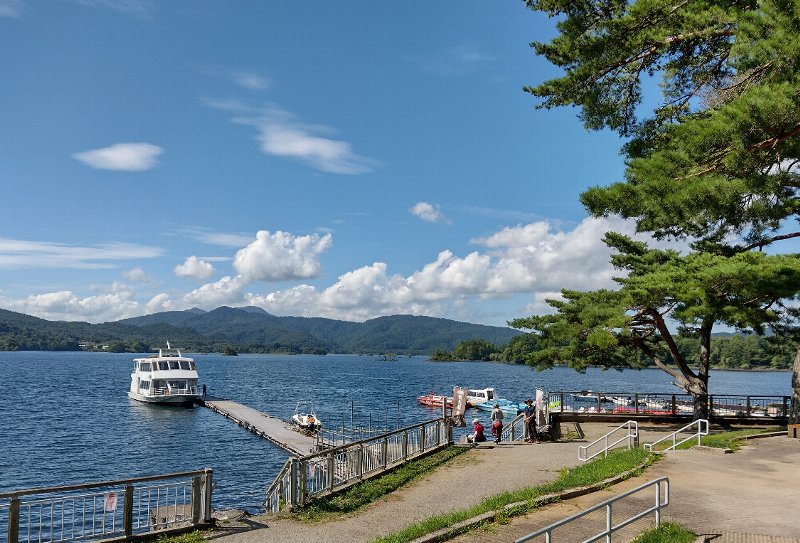 途中、お馴染み檜原湖が見えるんですよ。